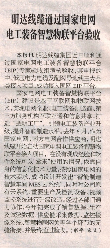 ¡¶µçÏßµçÀ±¨¡·2021Äê5ÔÂ21ÈÕÐÂÎÅ£º±¾±¨Ñ¶  Ê¥ÌÔɳÃûʤÊÀ½çÏßÀ¼¯ÍÅ¿ËÈÕ˳Ëìͨ¹ý¡°¹ú¼ÒµçÍøµç¹¤×°±¸ÖÇ»ÛÎïÁªÆ½Ì¨£¨EIP£©¡±×¨¼ÒÑéÊÕ×éÉóºËÑéÊÕ£¬ £¬£¬£¬£¬ÆäÉ걨µÄÖС¢µÍѹµçÁ¦µçÀ¼°ÅäÍøµ¼µØÏß3´óÆ·Àà½ÓÈëÏîÄ¿£¬ £¬£¬£¬£¬ËùÓÐÎÞÕû¸ÄÑéÊÕͨ¹ý£¬ £¬£¬£¬£¬ÀֳɽÓÈë¹úÍøEIPƽ̨¡£¡£¡£¡£¡£